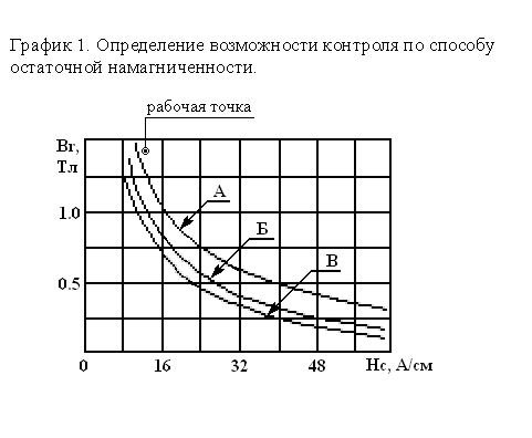 Используя график 1 определение возможности контроля по способу остаточной намагниченности, находим рабочую точку: