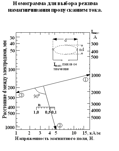 Используется дефектоскоп ДМП – 3М. Он может обеспечить ток (Imax) 1000 А.