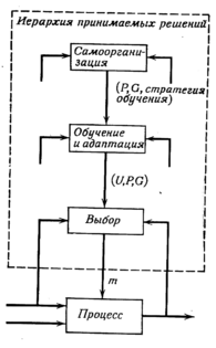 Слой обучения, или адаптации. Задача этого слоя - конкретизация множества неопределенностей U, с которым имеет дело слой выбора. Следует заметить, что множество неопределенностей U рассматривается здесь как множество, включающее в себя все незнание о поведении системы и отражающее все гипотезы о возможных источниках и типах таких неопределенностей. U получают, конечно, с помощью наблюдений и внешних источников информации. Назначение, второго слоя - сужение множества неопределенностей U.