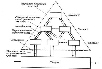 Период принятия решения для элемента верхнего уровня больше, чем для элементов нижних уровней. Для концепций слоя и страты это очевидно. Однако это утверждение остается верным и для концепции эшелона. А именно: управляющие воздействия, исходящие от вышестоящего элемента, не могут следовать чаще воздействий, подаваемых нижестоящими элементами, поведение которых он координирует; в противном случае он не сможет оценивать достигаемый эффект координации.