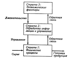 Заметим, что на любой из трех страт мы имеем дело с тем же самым предметом – основным физическим продуктом. На первой страте он рассматривается как физический объект, который подлежит обработке в соответствии с физическими законами; на второй страте его рассматривают как управляемую переменную; на третьей страте это уже товар как экономическая категория. Для каждого аспекта этой системы имеется свое описание и своя модель, однако система, конечно, остается одной и той же.