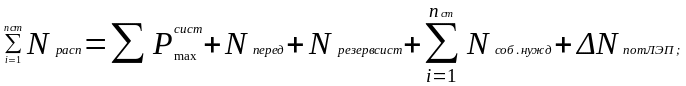 - сумма располагаемых мощностей всех станций системы;