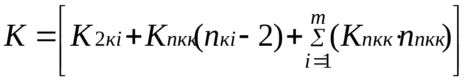 К = [К2к + Кnк (nк – 2)]∙Ссмр,