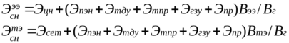 которые включают в себя расход электроэнергии на циркуляционные насосы (Эцн); расход электроэнергии на сетевые насосы (Эсет); расход электроэнергии на питательные электронасосы (Эпэн); расход электроэнергии на тягодутьевые устройства (Этду); топливоприготовление (Этпр); гидрозолоудаление (Эгзу) и прочие нужды (Эпр).