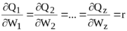 Приравнивая нулю частные производные функции F по величинам Wi и имея в виду равенство (9.3), получаем уравнения