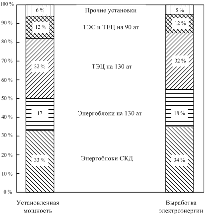 Примерно из 17 % установленной мощности и выработки электроэнергии 12 % обеспечивается энергоблоками мощностью 200 МВт, которые никак нельзя отнести к современным ни по уровню мощности, ни по уровню экономичности.
