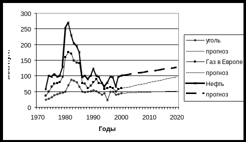 Рис.12.8. Прогноз цен на энергоресурсы в перспективе до 2020г.