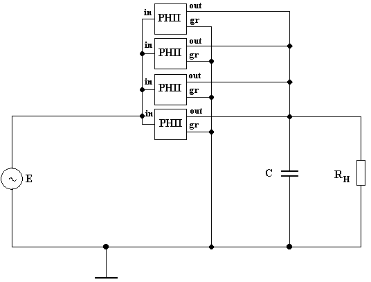 Основной недостаток предложенной схемы заключается в слишком большом I0, а следовательно слишком большой мощности. P=I02Rн. Для снижения тока предлагается разбить повышающий регулятор напряжения на четыре, что приведет к снижению тока в 4 раза.