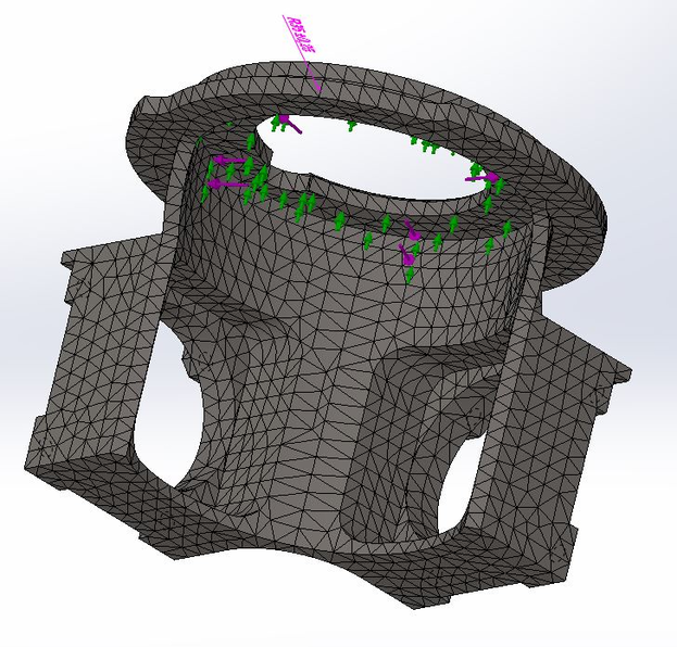 После разбиения твердотельной модели на конечные элементы проводится статический анализ модели, в процессе которого системой САПР «SolidWorks Simulation» методом конечных элементов решается задача определения напряжений и перемещений в узлах модели. При этом выполняется построение соответствующих эпюр [1].