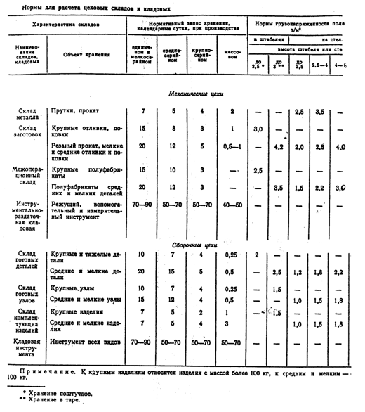 Типовые нормы для проектирования цеховых складов представлены в таблице 3.