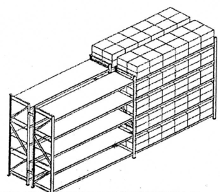 Стеллажи полочной конструкции (рис. 20) делят на две подгруппы: рамной и стоечной конструкции. Стоечная конструкция используется при небольших нагрузках, рамная – для средних и высоких нагрузках – до 600 кГ на полку. Предназначены для хранения изделий, не упакованных на паллеты (в различных коробках, ящиках и другой фасовочной таре).