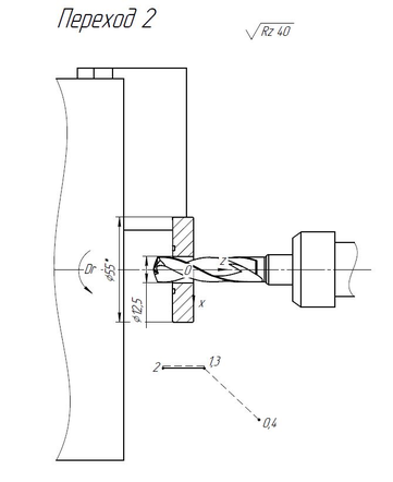 Сверлить осевое отверстие ⌀12,5 мм.