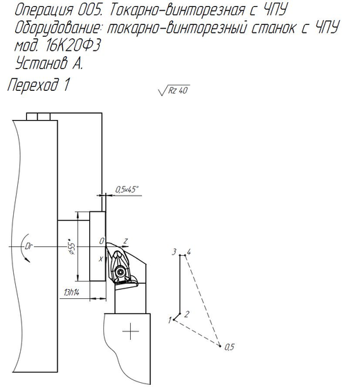 Операция 005: Токарно-винторезная с ЧПУ.