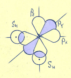 Вернемся к перекрытию орбиталей при образовании связей. В нашем примере область максимального перекрытия s и p-орбиталей лежит на линии, соединяющей центры атомов. Такой вид перекрытия получил название