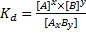 xA+yB где комплекс AxBy разбивается на x единиц A и y единиц B, константа диссоциации определяется так: