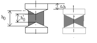 Здесь форма заготовки полностью соответствует форме инструмента. Однако, особенности самой формы бойков делают относительную деформацию неравномерной по радиусу заготовки, хотя абсолютная деформация h одинакова для всех точек. На периферии 0 = h / h0 , а в центре 1 = h / h01 .