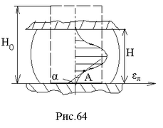 ср = (Нo - Н) / Но , а в средней части заготовки она, наоборот, значительно превосходит ср . Это объясняется влиянием трения на контактных поверхностях.