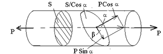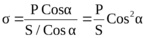 . В косом сечении под углом площадь уже будет S / Cos , а сила Р может быть разложена на нормальную к сечению P Cos и касательную, действующую в плоскости сечения, P Sin (см. рис. 19) [6].
