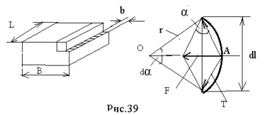 На рис. 39 показаны кристалл в форме параллелепипеда с размерами В и L, а также элементарный отрезок краевой дислокации длиной dl.