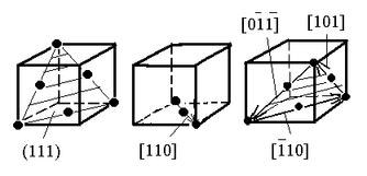 Плоскость скольжения - это наиболее плотно упакованная атомами плоскость кристаллической решетки. Направление скольжения - это направление, в котором расстояния между атомами минимальны. Например, в гранецентрированной решетке плоскостью скольжения является семейство {111}, а направлением скольжения - направления семейства [110].