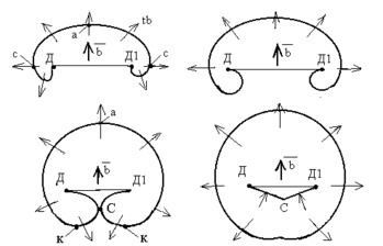 Поскольку вблизи точек «с» участки винтовой дислокации имеют противоположные знаки, то под действием одной и той же силы они движутся в противоположных направлениях, перпендикулярных вектору b. На участках вблизи точек «к» дислокации имеют краевую ориентацию, но знак их противоположен знаку краевой ориентации вблизи точки «а». Под действием одних и тех же сил краевые дислокации разного знака перемещаются в противоположных направлениях. Вблизи точки «С» дислокации снова винтовые и, как и вблизи точек «с», они имеют противоположные знаки, поэтому притягиваются. Образуется замкнутая петля. Дислокационная линия ДД в конце каждого цикла образования петли восстанавливается, поэтому она может генерировать неограниченное количество петель. Каждая петля при своем распространении на плоскости скольжения производит единичный сдвиг. Многократной генерацией и образованием большого количества петель объясняются перемещения в тысячи межатомных расстояний, наблюдающихся при пластической деформации кристалла.