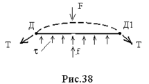 На дислокацию действуют 2 силовых фактора. Первый - это внешняя сила f, вызывающая касательные напряжения сдвига и растягивающая линию дислокации в дугу (при закрепленных концах). Второй - это внутренняя сила упругости нити F, стремящаяся восстановить первоначальную форму.