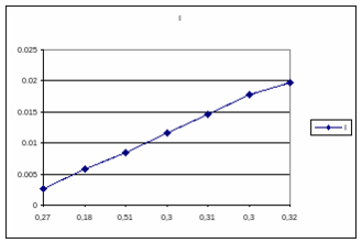 | I | 6*10^-6 | 10^-5 | 0.0008 | 0.0009 | 0.001 | 0.0011 | 0.0012 |