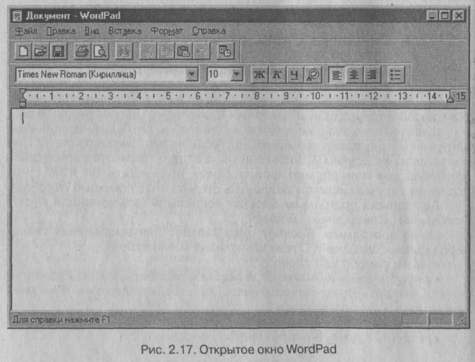 Кроме этого, вы можете просто начать вводить текст в открытом окне WordPad, показанном на рис 2.17.