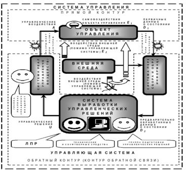 Разумеется, на систему управления внешняя по отношению к ней среда действует как через объект управления, так и через управляющую систему. Однако чаще всего при организации управления все воздействия внешней среды условно переадресуют на объект управления.
