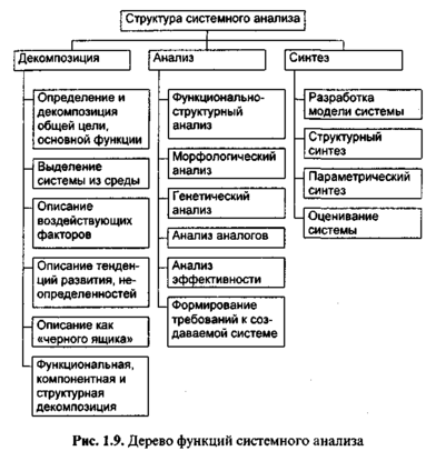 Основные задачи системного анализа могут быть представлены в виде трехуровневого дерева функций.