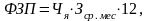 - явочная численность работников подстанции; 12 - число месяцев в году.