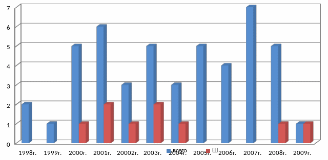 | 2007г. | 1 | 1 | 1 | 2 | 5 | ||||