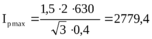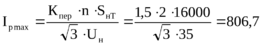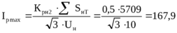 Расчет максимальных рабочих токов производится на основании номинальных параметров оборудования по формулам: