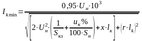На участке переменного тока минимальный ток КЗ определяется по выражению: