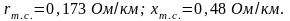 – погонное сопротивление КС, Ом/км;