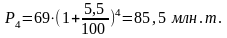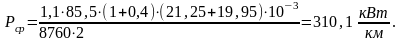 Удельная мощность в кВт/км на четвёртый год эксплуатации определяется при условии, что количества перевозимых грузов в четном и нечетном направлениях равны 0,5P4 :