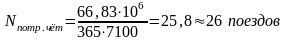 Потребное число поездов в одном направлении в среднем за сутки может быть определено по годовому грузовому объему по формуле [2]: