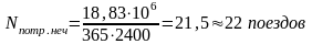 Расчетное число поездов при использовании пропускной способности