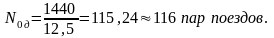 Действительный интервал между поездами, определяющий пропускную способность, будет равен для участка постоянного тока: