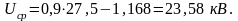 Средний уровень напряжения соответствует установленным допустимым значениям в соответствии с ПУСТЭ-97 (21 кВ). Так как это значение напряжения эффективное, то норму 21 кВ необходимо умножить на 0,9, поэтому
