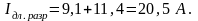 ток, потребляемый потребителями, подключаемыми к аккумуляторной батареи при аварии, т.е. аварийное освещение, А.