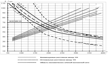 Зная удельное потребление мощности при помощи номограммы (рис. 3.1) найдем оптимальное расстояние между тяговыми подстанциями.