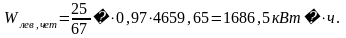 Расход энергии, приходящийся на плечо питания тяговой подстанции, для каждого режима