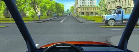 2. Выехав на перекресток, уступите дорогу встречному грузовому автомобилю и завершите поворот.