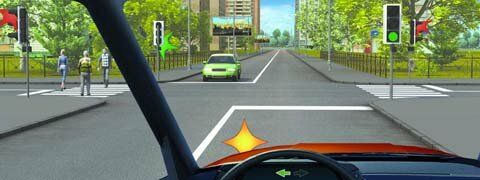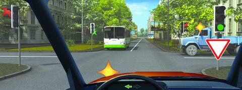 Вы намерены проехать перекресток в прямом направлении. Ваши действия?
